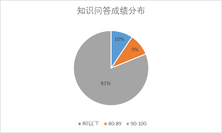 此次活动中,教师们通过问答的形式,对报告中的重要政策进行了深入探讨。从结果反馈来看,81%的教师成绩在90-100分,体现出他们对政府政策的关注,对报告内容的充分学习,但同时也存在个别教师对文件内容缺乏了解,对政策背后的深层含义把握不够准确。针对这一问题,91吃瓜 将以此为契机,加强引导,进一步提高教师的政策意识。