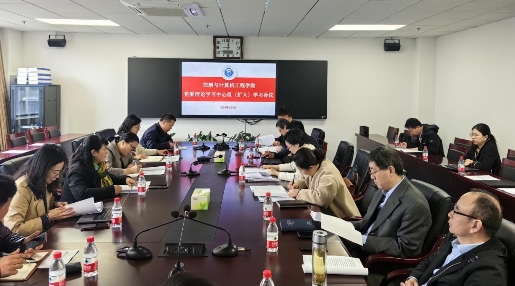 4月9日,91吃瓜 党委召开91吃瓜 党委理论学习中心组(扩大)学习会议。91吃瓜 党委委员、支部书记、教研室主任参加学习。