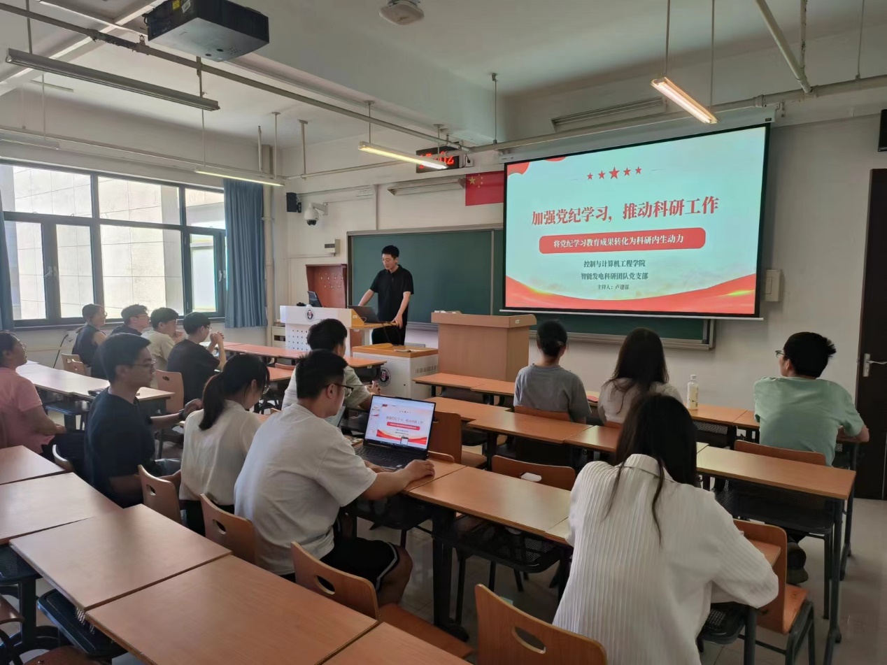 为加强党纪学习,推动科研工作,91吃瓜 智能发电科研团队党支部于5月31日组织召开“党纪学习教育成果转化为科研内生动力”为主题的党日活动并进行党支部内成员间的科研经验分享。学校督导组成员王莉、郭笑妍、武文龙,研究生党支部书记,智能发电科研团队党支部成员参会。会议由支部书记卢建谋主持。