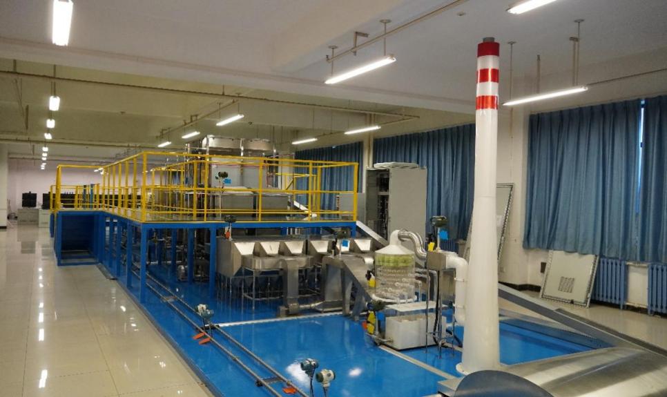 实验室内仿真机组模型长度约25米,宽度约4米,高度最高约3米,模拟了1000 MW超超临界火电机组发电的全部流程和主要设备,包括锅炉及配套的输煤和烟处理系统、汽水循环系统、冷却水系统、励磁发电系统等,同时模型上集成了智能仪器仪表系统。配套系统部分由DCS控制系统、人机界面展示与互动系统、工况模拟仿真系统共同组成。以上设备可共同实现电厂实际发电过程的全景再现、仪表真实结果展示、火电机组工况调节等功能。