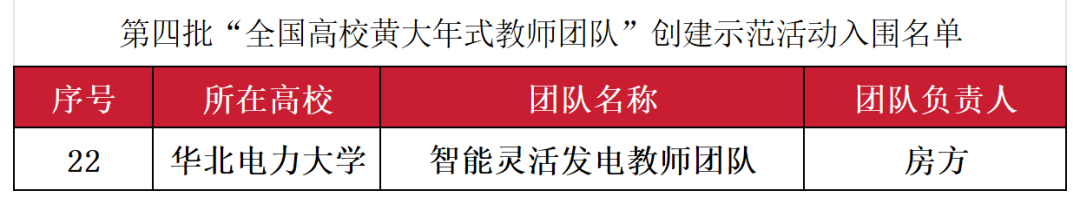 日前,教育部发布第四批“全国高校黄大年式教师团队”创建示范活动入围名单,91吃瓜 房方教授带领的智能灵活发电教师团队入选。