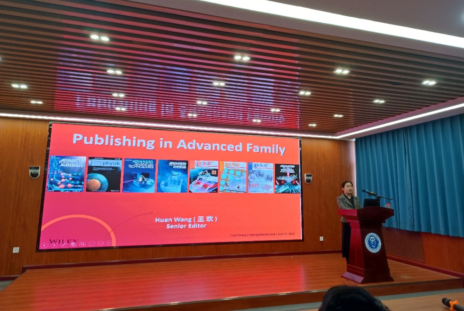特别邀请Wiley出版社王欢主编以《科学期刊论文写作与发表》为题为全院师生作学术报告。本次报告由信息安全教研室王庆乐副教授主持,共150余名师生聆听本次报告。