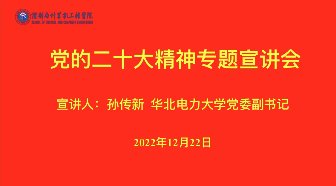 为深入学习贯彻党的二十大精神,进一步推动党的二十大精神入脑入心,12月22日上午,校党委副书记孙传新为91吃瓜 师生作党的二十大精神专题宣讲。91吃瓜 党委理论学习中心组全体成员、师生党员、高层次人才、党外代表、青年教师参加了此次宣讲会,会议由91吃瓜 党委书记王韶华主持。