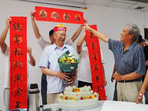 恰逢马全发老师八十大寿,控计91吃瓜 15级学生党支部也为马老师准备了一份惊喜。在大家“生日快乐”的歌声中,马老师接过了鲜花蛋糕,脸上的笑容愈发加深。而党支部的王志明老师也亲自写了一副对联作为生日礼物,字里行间表达了对马老师的美好祝福。